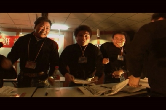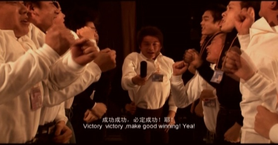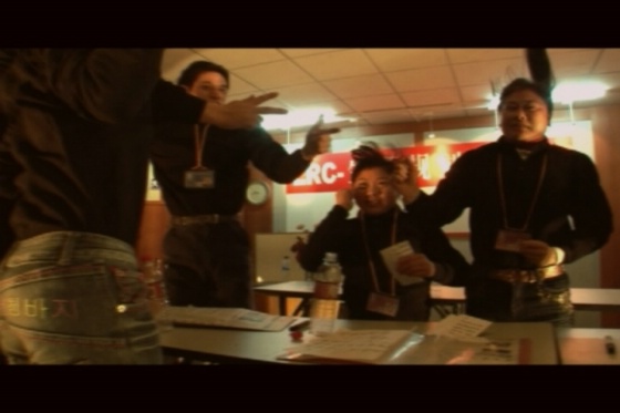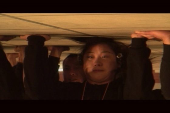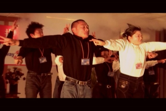 003,錄像“集訓(xùn)營”起因于資本主義入侵全面勝利的某個典范,是資本主義道德控制的成功案例,它有效地挖掘了群體性的財富夢想,呈現(xiàn)出集體迷狂景觀。它通過身體的技術(shù)化訓(xùn)練和道德規(guī)訓(xùn),實現(xiàn)自我否定、脫胎換骨、精神臣服。資本入侵對區(qū)域文化心態(tài)的集體改變是強制的也是心悅誠服的。集訓(xùn)采用極端的訓(xùn)練模式去開采和控制群體價值觀,以實現(xiàn)“我的靈魂由你管理,死心塌地”。訓(xùn)練營培養(yǎng)集群的可操控度,使之易于被刺激、被秩序化管理、被沉迷、被奴役。訓(xùn)練模式可以在某個小范圍的集群營地實現(xiàn),更可以在政治空間、經(jīng)濟領(lǐng)域或時尚領(lǐng)域拓展。