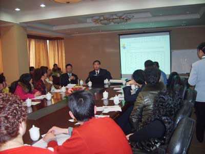 1月10日下午首先召開了高級領導人會議,分公司總經理黃付前回顧了2008年的工作,北京羅麥藥業四川分公司在總公司的領導下,通過分公司員工和全體經銷商的共同努力,排除干擾,發憤圖強,市場業績穩步上升,完成了各項既定目標,為2009年西南市場發展打下了良好的基礎。其次,黃總也指出了西南市場存在的四大問題和務必要處理好的十大關系,提出了到年底實現月銷售額翻番的奮斗目標和09年的十五大措施。黃總的講話引起了經銷商的共鳴,大家都充分認識到必須盡快統一認識,改變觀念,提升能力,加強學習。會中還全文學習了汪靜董事長2008年12月20日在全國羅麥市場骨干會議上的講話。經銷商反映熱烈,情緒高漲,紛紛表示要堅定信心,大干快上,充分利用有利時機,順勢而上,抓住機遇,在2009年實現業績的突破。