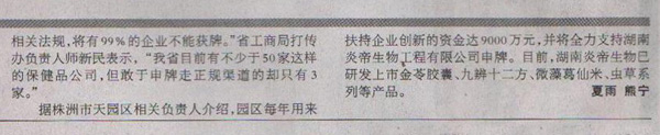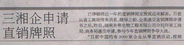 2009年4月10日,瀟湘晨報報導了湖南炎帝生物申請直銷牌照的新聞,其他各大媒體的宣傳報道將陸續(xù)推出。