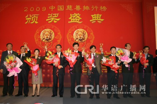 “2009中國慈善排行榜”入榜慈善家121位,共計捐贈18.84億元;入榜慈善企業899家,共計捐贈117.95億元(含物品捐贈)。繼2008年獲得“中國首善”稱號后,江蘇黃埔再生資源利用有限公司董事長陳光標今年獲得中國慈善排行榜新設立獎項“最具號召力的中國慈善家”稱號,世紀金源集團黃如論、黃濤父子因現金捐贈第一名而獲得“中國首善”稱號,四川宏達集團董事長劉滄龍的企業在地震期間遭受重創,但仍第一時間捐資支援災區,獲得“2009慈善特別貢獻獎”。