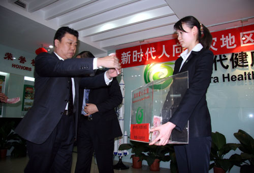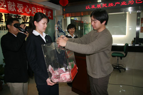 隨后,玥蘢芯代表國(guó)珍專營(yíng)北京甘家口店劉洵店長(zhǎng)向?yàn)?zāi)區(qū)新時(shí)代人捐款50000元,國(guó)珍專營(yíng)北京工體店王愛芹店長(zhǎng)向?yàn)?zāi)區(qū)捐款17000元,國(guó)珍專營(yíng)北京中關(guān)村店馮景華店長(zhǎng)向?yàn)?zāi)區(qū)捐款11999元,其他到場(chǎng)的公司領(lǐng)導(dǎo)、銷售員和員工代表也紛紛慷慨解囊,整個(gè)啟動(dòng)儀式共向?yàn)?zāi)區(qū)捐款人民幣238151元。