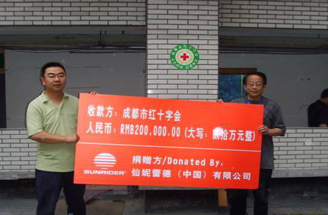 5月,仙妮蕾德國(guó)際原本計(jì)劃在新疆,西安,內(nèi)蒙古,云南各地開(kāi)設(shè)分公司。由于5.12突發(fā)的汶川大地震,使仙妮蕾德在此次災(zāi)難中遭遇了不同程度的影響。重慶分公司經(jīng)理告訴記者,新疆分公司的開(kāi)業(yè)日原計(jì)劃定在5月19日,因當(dāng)天成為全國(guó)哀悼日,仙妮蕾德新疆分公司把開(kāi)業(yè)慶典變成捐贈(zèng)儀式,當(dāng)晚的開(kāi)業(yè)慶功晚宴也變成募捐晚宴,一天時(shí)間大家齊心湊得善款263200元人民幣。西安分公司5月開(kāi)業(yè)計(jì)劃延遲到11月,并捐出善款20萬(wàn)人民幣,內(nèi)蒙古、四川、云南在分公司開(kāi)業(yè)之際各自捐出善款20萬(wàn)元人民幣,重慶、浙江以及仙妮蕾德公司員工截至6月4日,共湊善款390萬(wàn)。