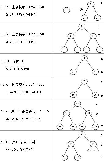 (其中C級銷售補(bǔ)助從直接B級提成中扣除,B級銷售補(bǔ)助從直接A級提出中扣除。)