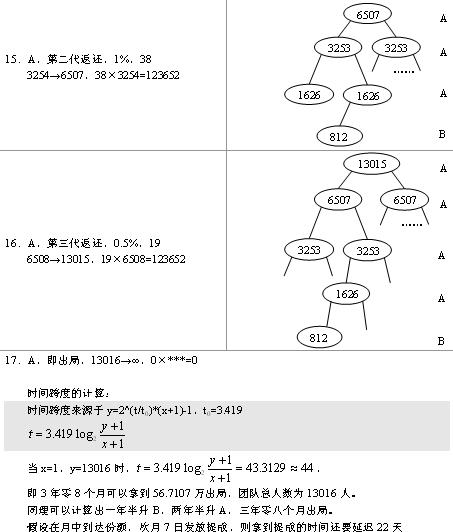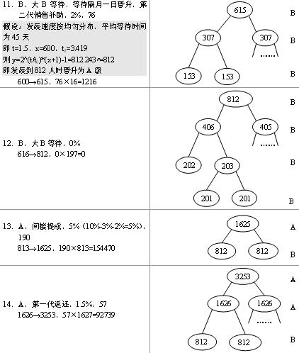 現(xiàn)假設(shè)兩條線均衡發(fā)展,新加入者每2個月內(nèi)可以發(fā)展一條下線,并且整個過程中不出現(xiàn)任何問題。在此假設(shè)前提下按“五級三階制”推算其最終收入和消耗時間。