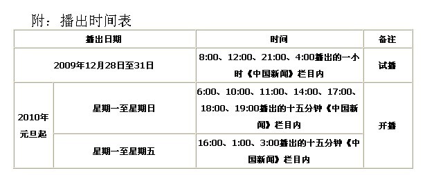 據(jù)悉,本次合作將采取分期實(shí)施投放計(jì)劃的原則。首期投放,主要圍繞央視四套整點(diǎn)中國新聞,分別在周一至周日(6:00、10:00、11:00、14:00、17:00、18:00、19:00)以及周一至周五(16:00、1:00、3:00)播出的《中國新聞》欄目內(nèi)播出,平均每天播出約10次。