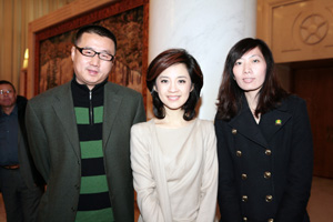“母嬰平安120行動”形象大使許戈輝女士(中)與天獅集團中國區副總裁于明先生(左)、天獅集團副總裁助理李寶蘭女士(右)合影