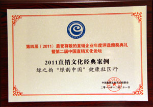 綠之韻榮獲“2011最受尊敬的直銷企業(yè)”稱號