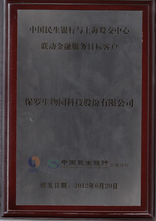 2012年6月20日,中國民生銀行上海分行與上海股權托管交易中心在民生銀行大廈共同舉辦了向股交中心掛牌企業主動授信的儀式。保羅生物作為上海股交中心的首批掛牌企業應邀參加,財務總監顧恒先生代表企業出席了儀式。