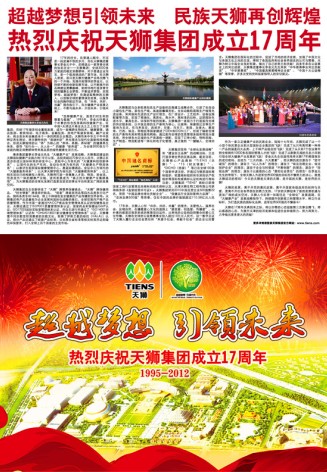 天獅的發展,離不開黨的惠民政策,離不開國家各級政府的扶持與關愛,更離不開社會各界朋友的鼎力支持,17歲的天獅迎來了新的發展機遇與更加廣闊的成長空間,天獅人今后將一如既往走“全球化”發展道路,在“大健康產業”發展戰略指導下,持續提升創新能力和管理水平,樹立行業標桿,為打造民族的國際化品牌,進軍世界500強而不懈奮斗!